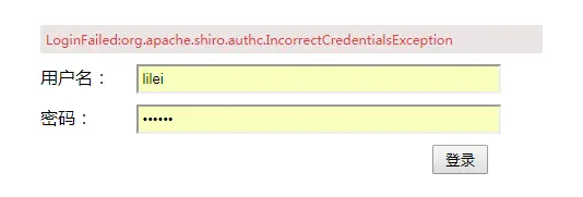 | IncorrectCredentialsException | 用户名密码不正确 |
