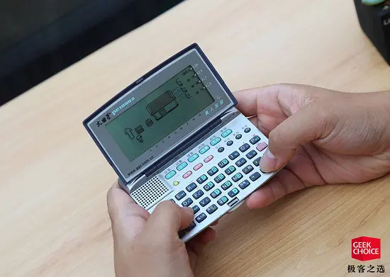 我们回归到产品本身,第一代文曲星产品在外形上看起来更像是一款带盖子的科学计算器,只不过他的显示屏幕更大,显示的内容也稍稍精细了些。之所以用「稍稍」是因为在那个时代,屏幕上的一个个像素点都是清晰可见的,并没有产生多大的质变。