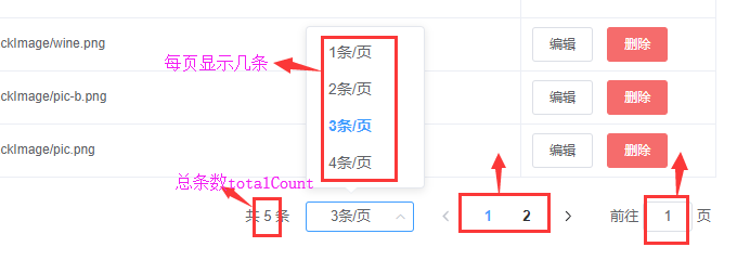 handleSizeChange(val) { this.pageNum=val; this.getPackData();//根据用户获取的每页显示页面数量显示页面 },2、操作当前页