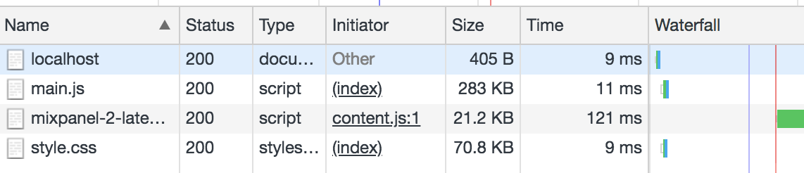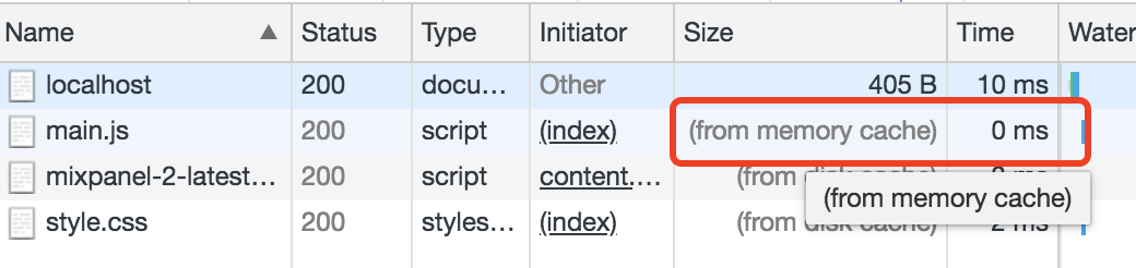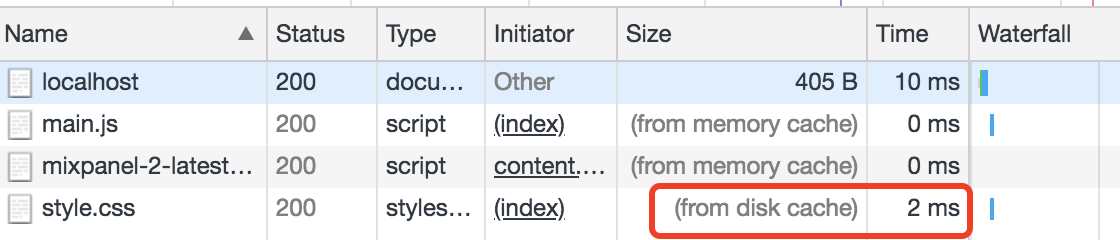 从图中可以看到,当设置了 Cache-Control ,并且在有效时间之内重复请求同一个文件,处理时间为 0ms,也就是说浏览器根本没有向服务器发出请求,而是从内存中读取请求的文件。
