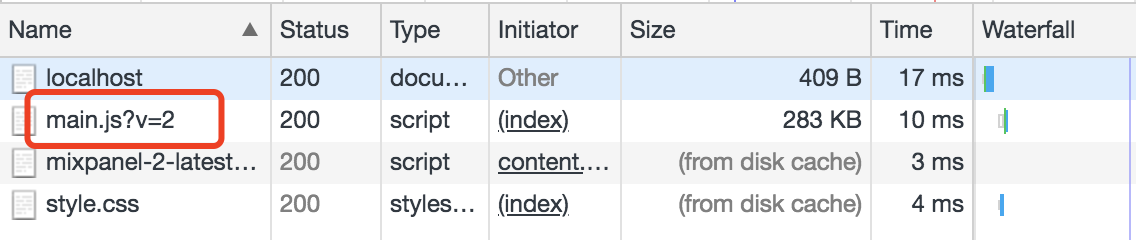 这里只需要更改下 JS、CSS 的请求 URL 即可,比如加一个查询参数。效果如下: