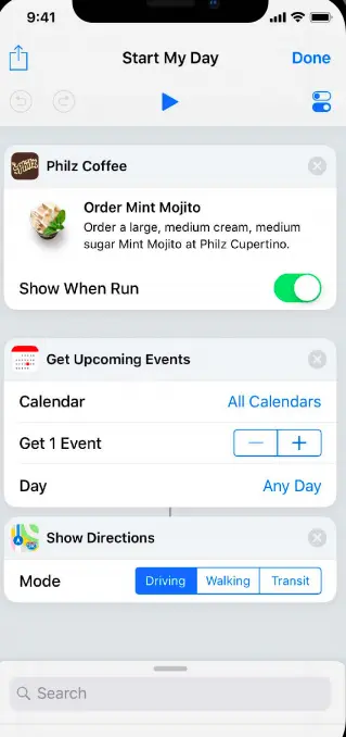 - 在Shortcuts APP中用户可以自定义一条语音,在对Siri发出语音指令时,Siri会执行预先设定好的一系列操作。