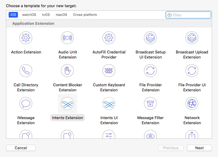如果我们希望做到不打开app的情况下就执行一些app的功能,我们需要创建相应的intent extension,如果我们想要定制打开shortcuts的页面,在创建intent extension的时候可以一并选择创建intent UI extension