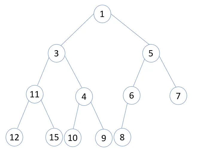 第三次循环:k=5,child=11,c为图中节点8,right=12,经过子节点比较找出较小值末位置节点6相比