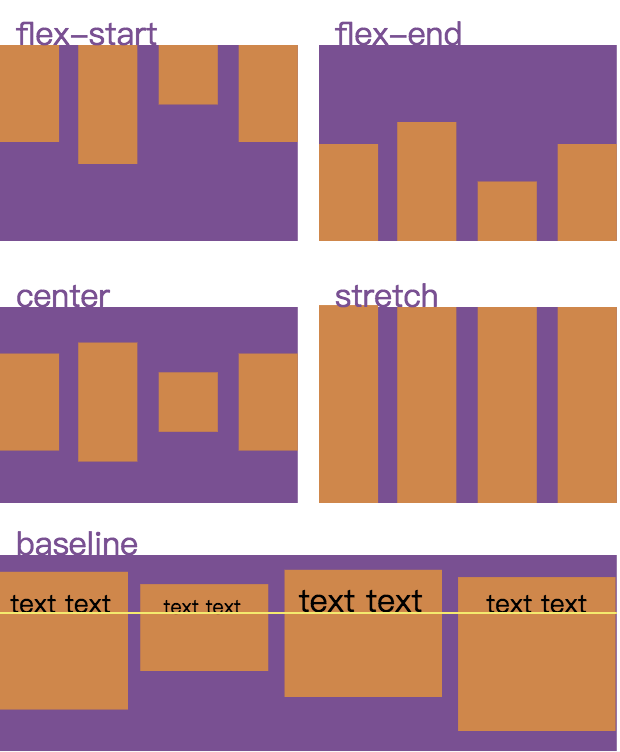 align-items: flex-start | flex-end | center | baseline | stretch;