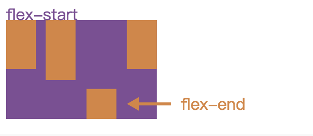 flex-end 弹性盒子元素的侧轴(纵轴)起始位置的边界紧靠住该行的侧轴结束边界。