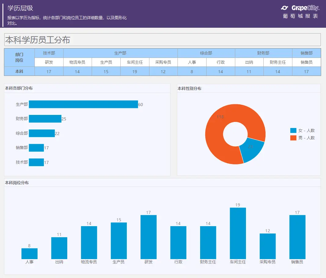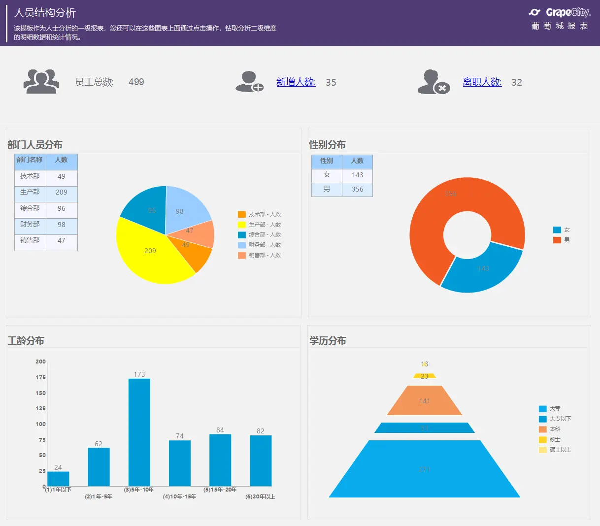 葡萄城报表模板库中包含了针对人力资源若干报表模板供广大报表开发设计人员免费参考,并能通过内置的设计器查看报表细节,实时修改并查看效果。