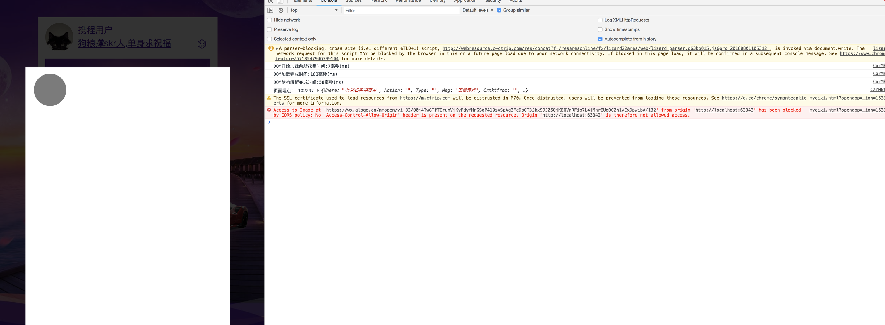然后我就很开心了 开心的发给测试 然后扑街 测试的手机上还是完全白板 啊?难道是兼容性的问题?可是我们都是iphone7啊 ! 而且兼容性什么的最讨厌了! 我快绝望了 然后在我的手机上登陆她的账号 也是截图不了的 这太奇怪了 !难道是账号的问题? 毕竟一整天都在解决所谓的跨域问题!图片跨域啥的很多啊!