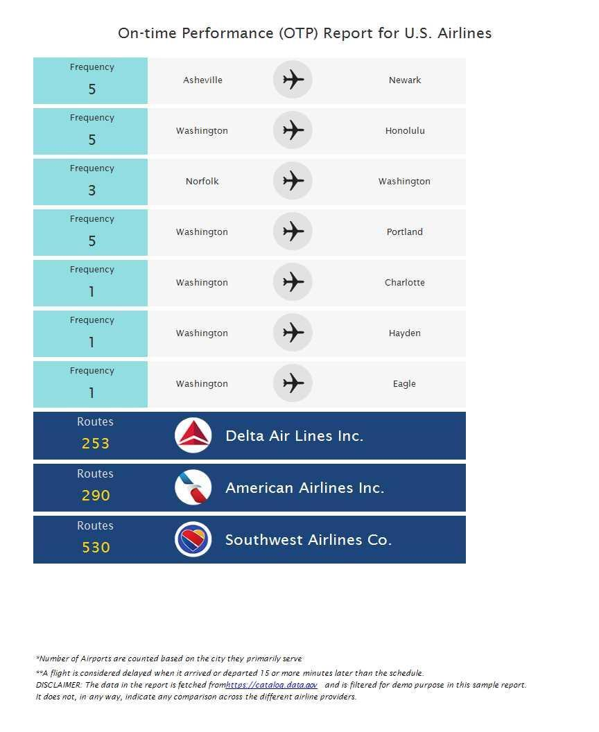 本次也带来了新的示例,如航班准点分析(Flight On-Time Performance)报表模板展示。