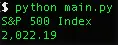 当你运行这个程序,你可以看到标准普尔 500 指数的当前价格被打印了出来。