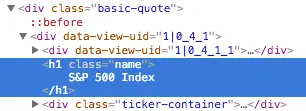 类似的,如果你悬浮并且点击“标准普尔 500 指数”,它被包裹在 <div class="basic-quote"> 和 <h1 class="name"> 里面。
