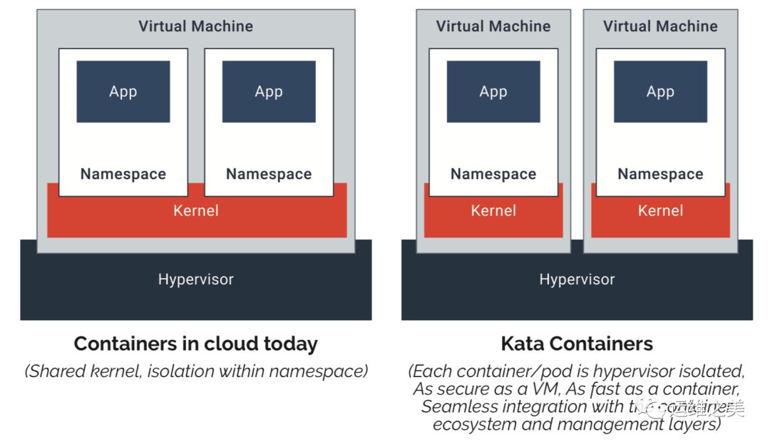 Kata Containers 其实跟 RunC 类似,也是一个符合 OCI 运行时规范的一种实现。不同之处是它给每个 Docker 容器或每个 K8S Pod 增加了一个独立的 Linux 内核 (不共享宿主机的内核),使容器具有更好的隔离性、安全性。