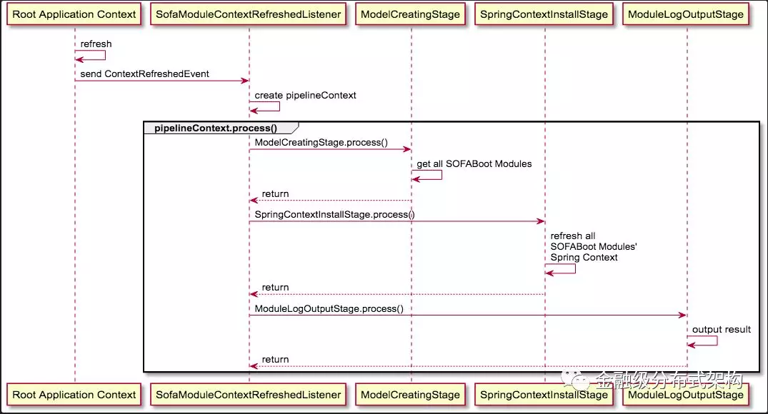 调用 PipelineContext 的 process 方法,会触发这三个 Stage 依次执行,对当前 ClassPath 包含的所有 SOFABoot 模块都进行刷新。