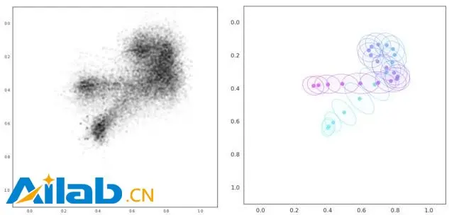 对应单词“可以could”(左)的原始数据点,以及每个采样方差(右)的归一化采样轨迹