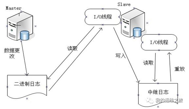 slave将master的二进制日志事件(binary log events)拷贝到它的中继日志(relay log)中;