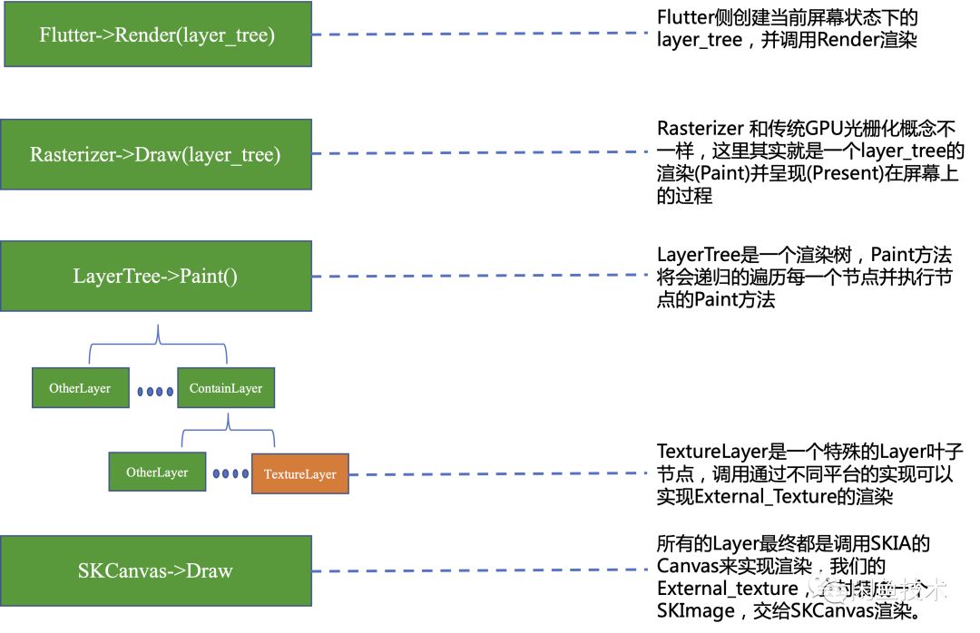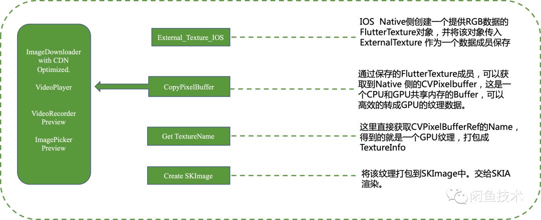Flutter引擎通过Texture的方式,由Native侧提供相应的渲染内容(解码视频文件获得帧Buffer等)的方式来提供对于视频的支持。
