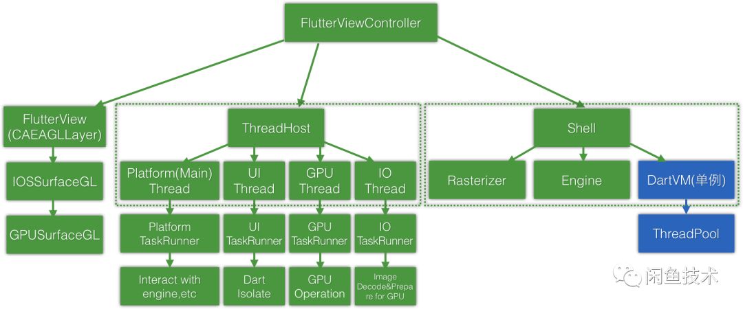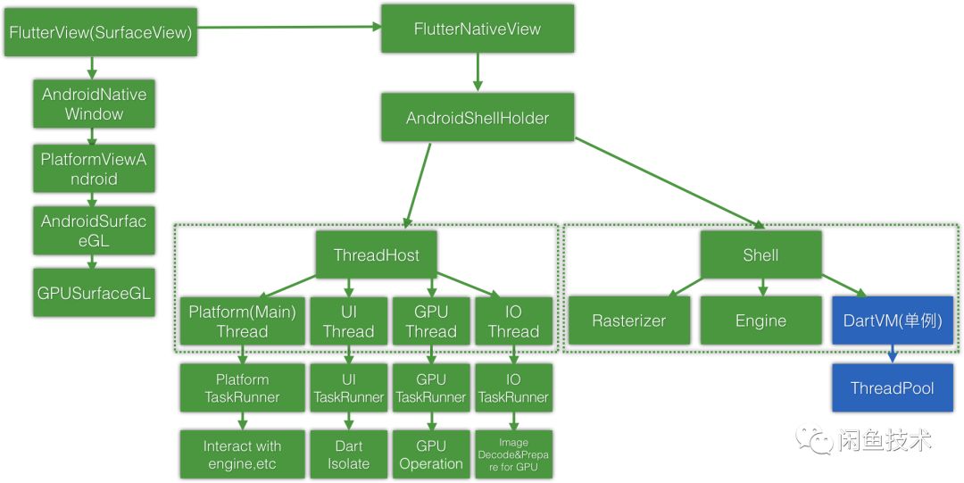 这种Flutter单例的实现带来的好处显而易见。一方面,单个Flutter实例因为位于相同的Isolate,其数据通信和共享将很容易。另一方面,引擎的默认实现中,每一个Flutter实例会新启动三个线程(IO,GPU和UI),带来了额外的资源使用,单实例可以避免这个问题。