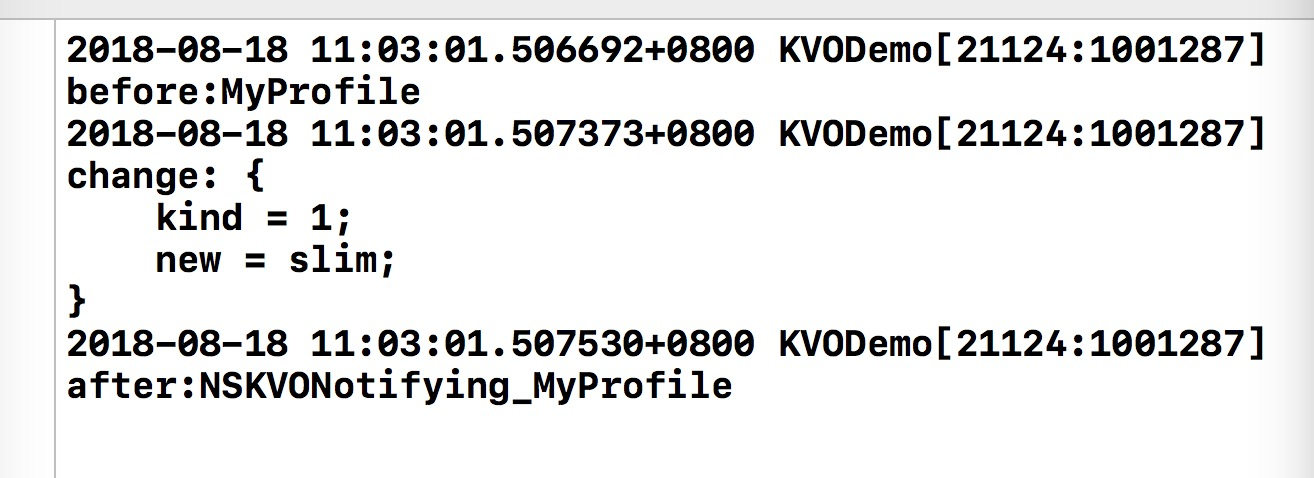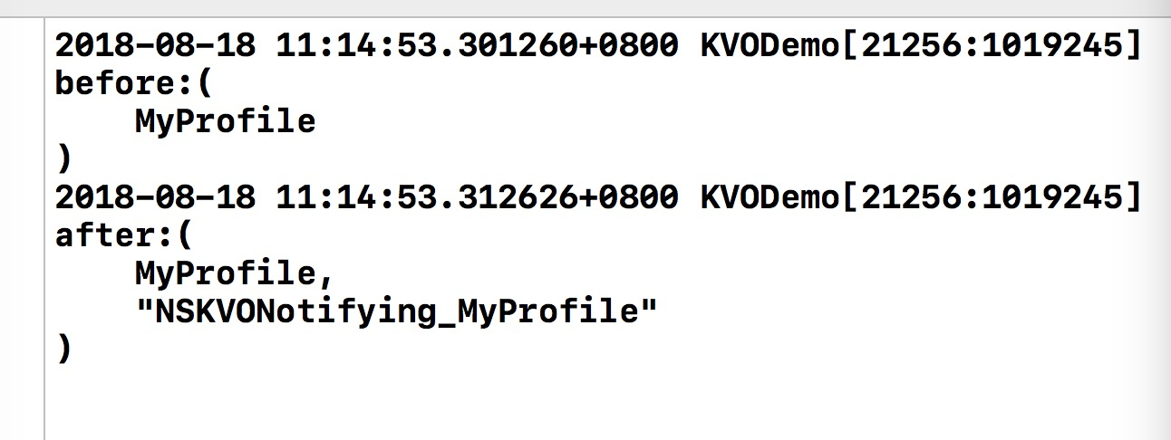1.通过打印可以看出class明显发生了变化,监听之后的class替换了原有class的isa指针