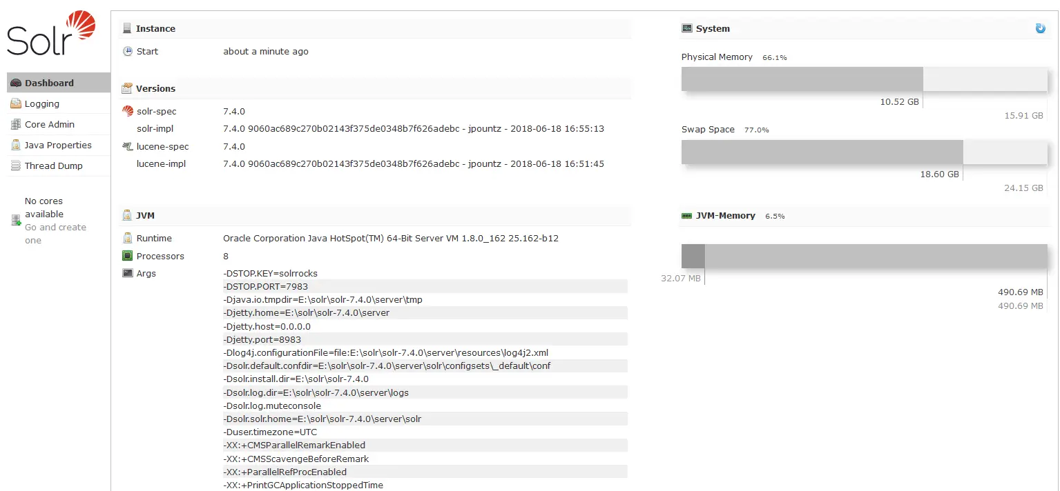 要求:Apache Solr在Java 8或更高版本上运行。对于所有Java版本,强烈建议不要使用实验性的-XX JVM选项。