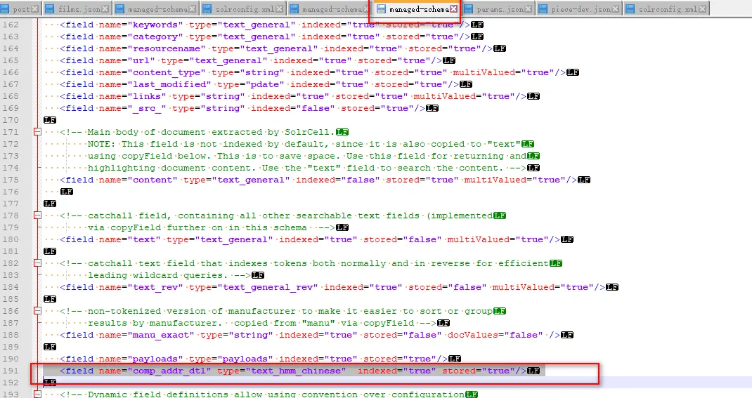 b. 在managed-schema(在server/solr/new_core/conf目录下,这里选的自定义core即new_core)文件中添加新分词器。
