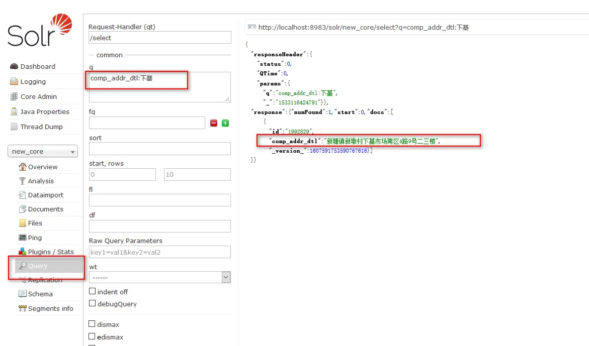 至此,solr单机版安装并启动完成,并实现了对中文分词的查询。