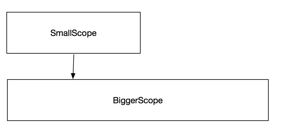 因为FragmentComponent-->ActivityComponent。因此,可以得出ActivityComponent实例生命周期长于FragmentComponent的实例(不然,FragmentComponent要传入AppComponent依赖的时候,没有可以赋的值),因此可以得出SmallScope和BiggerScope之间存在如下关系。