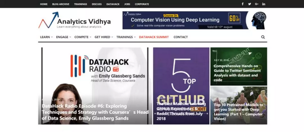 笔者有话说:与Towards Data Science一样,这也是一个优秀的数据科学教育网站。在它的blog里面,大多数的文章以教程的方式展开,并附有代码。除此之外,还有一些纯干货型文章,例如:The Essential NLP Guide for data scientists (with codes for top 10 common NLP tasks)。