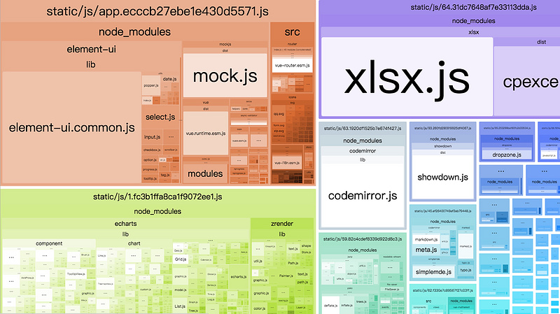 就拿 vue-element-admin 来说,它是一个基于 Element-UI 的管理后台,所以它会用到如 echarts、xlsx、dropzone等各种第三方插件,同时又由于是管理后台,所以本身自己也会写很多共用组件,比如各种封装好的搜索查询组件,共用的业务模块等等,如果按照默认的拆包规则,结果就不怎么完美了。
