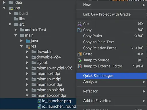 - 2、支持在AndroidStudio项目中直接选中指定的一个或多个图片,右键点击直接压缩。