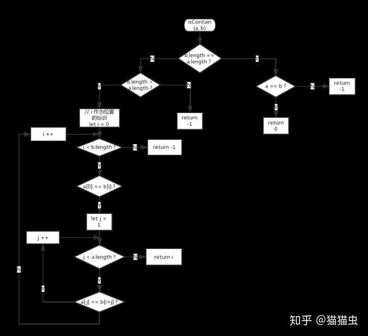 continue //继续内部的for循环,直到a遍历完或者出现a[j] != b[j + i]的情况发生