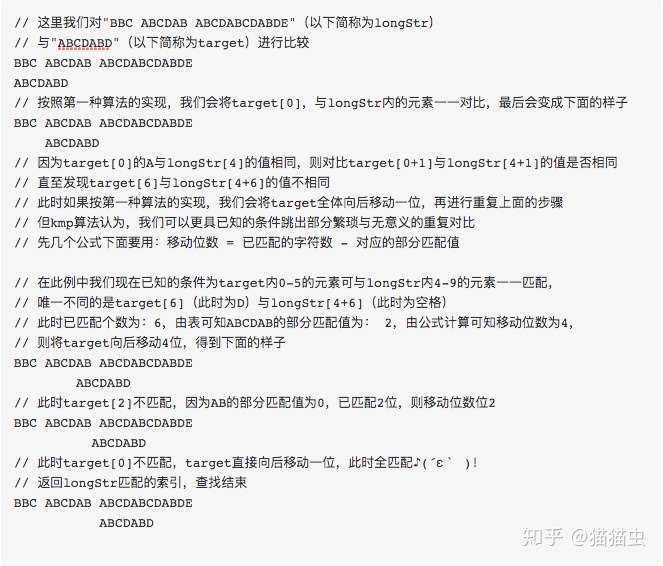 上面的实现是按着一般思维来实现的,但考虑到出去面试处处小心的原则,肯定有坑!毕竟题目里都写了算法效率尽可能高,那比O(m * n)更快的算法肯定是存在的(应试教育所培养的直觉(´・Д・)」),后面和舍友聊天的时候了解到还存在一个kmp的算法,能把时间复杂度变成O(m + n),Ummmm....总之kmp更高效就是了。