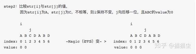 部分匹配表由部分匹配值构成,部分匹配值为"前缀"和"后缀"的最长的共有元素的长度。还是以"ABCDABD"为例。