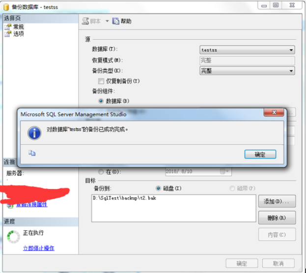 示例:backup database testss to disk='D:\SqlTest\backup\t3.bak' with differential;