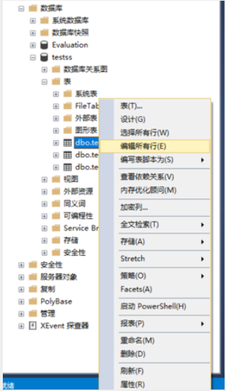 1:打开数据库,选择数据表,右键点击-》编辑所有行(如未配置,点击编辑前200行)。