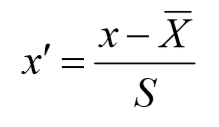 标准化(z-score) 标准化:基于特征属性的数据(也就是特征矩阵的列),获取均值和方差,然后将 特征值转换至服从标准正态分布。计算公式如下: