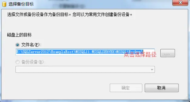 4、在定位数据库文件弹出框中-》选择备份文件路径-》输入文件名(注意添加后缀名)-》点击确定。