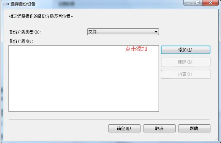 2、在还原事务日志弹出框中-》选择备份介质-》选择路径。