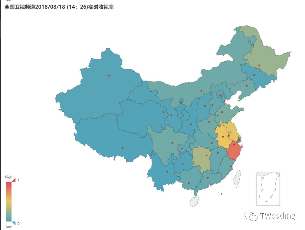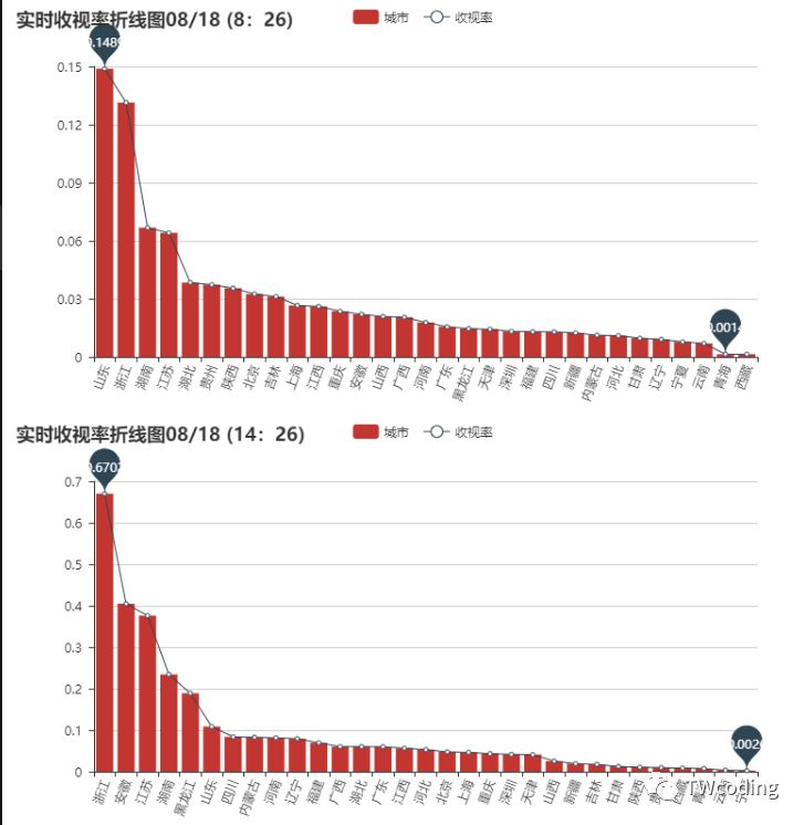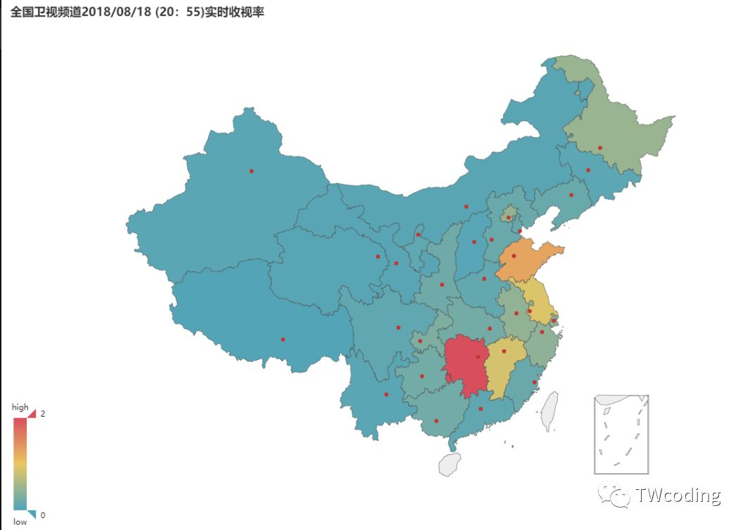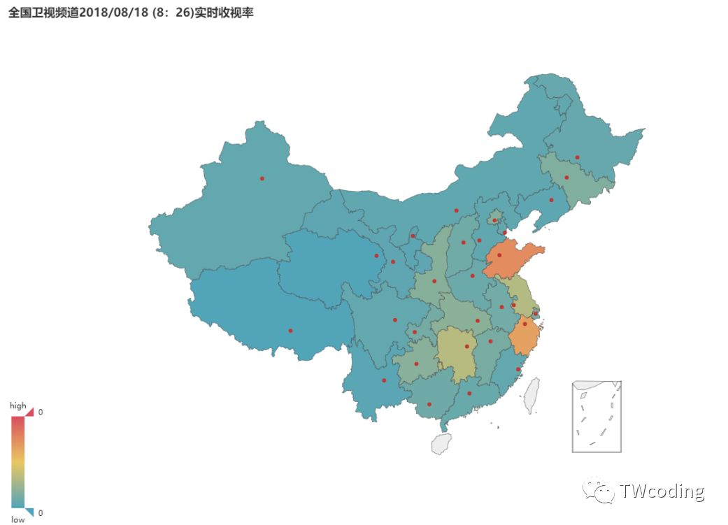 小编在此采集的卫视实时收视率数据为8.18日当天的上午,中午,和晚上三个时间段的实时卫视收视率数据。全国地图对应卫视收视率数据展示如下。