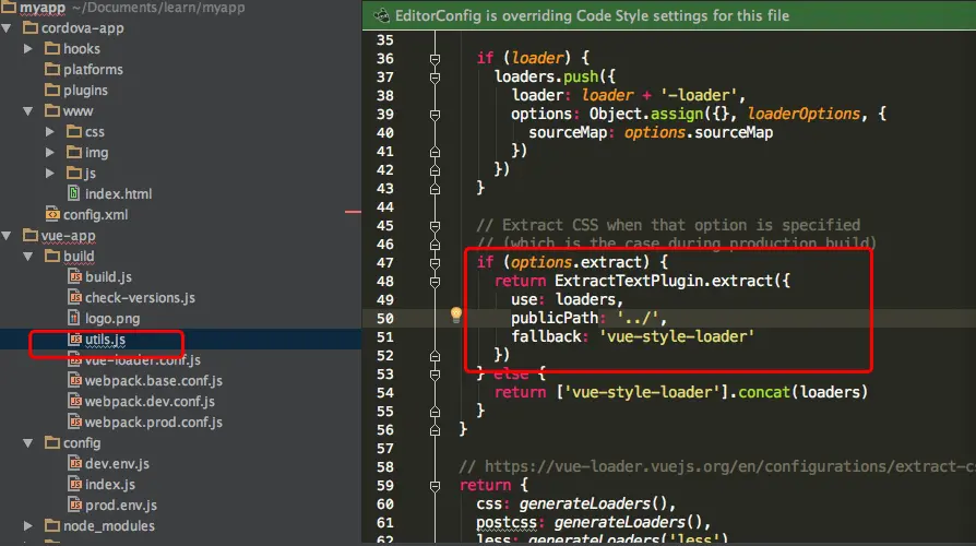 就可以看到vue-app项目的代码编译打包到cordova-app的www目录了。
