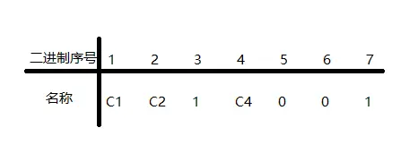 这个题目复杂在如果有一位出错,那么很有可能会造成C1、C2、C4校验位的1的个数均不是偶数,所以确定起来比较麻烦,我们来看看这究竟是如何解决的。 我们按照之前的校验位原则再列出一张表格:
