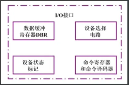 如上图所示,I/O接口由数据缓冲寄存器、设备选择电路、设备状态标记、命令寄存器和命令译码器组成。之所以说I/O接口起到了桥梁的作用,是指它一端连接了CPU,另一端则连接了I/O设备,能够有效的保证设备和CPU间 正确的数据交换。 接下来说一下各个模块的作用: 设备选择电路:这个电路是一种比较器,简单可以理解为CPU向接口发送了一个设备地址,而比较器就是拿着这个设备地址去判断究竟那个I/O设备的地址和这个地址相同,如果找到则建立连接。 命令寄存器和命令译码器:起到了传送命令的作用 数据缓冲寄存器:缓冲从I/O设备中读取到的信息,或者是把CPU中传给I/O设备的数据缓存。 设备状态标记:可以用于标记设备的工作状态、标记设备是否准备完成、标记是否可以向CPU发送中断请求等