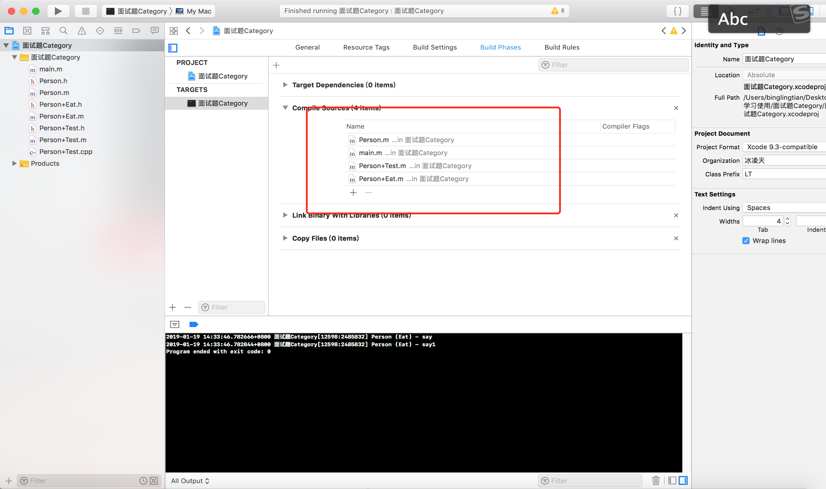 Person+Test, 后加载的Person+Eat, 所以在合并后的Person的方法列表里,Person+Eat中的方法排在了Person+Test中方法的前面 -