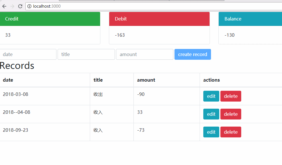 用react写一个的财务系统,系统有添加,删除,更改数据,以及计算出金额的变化