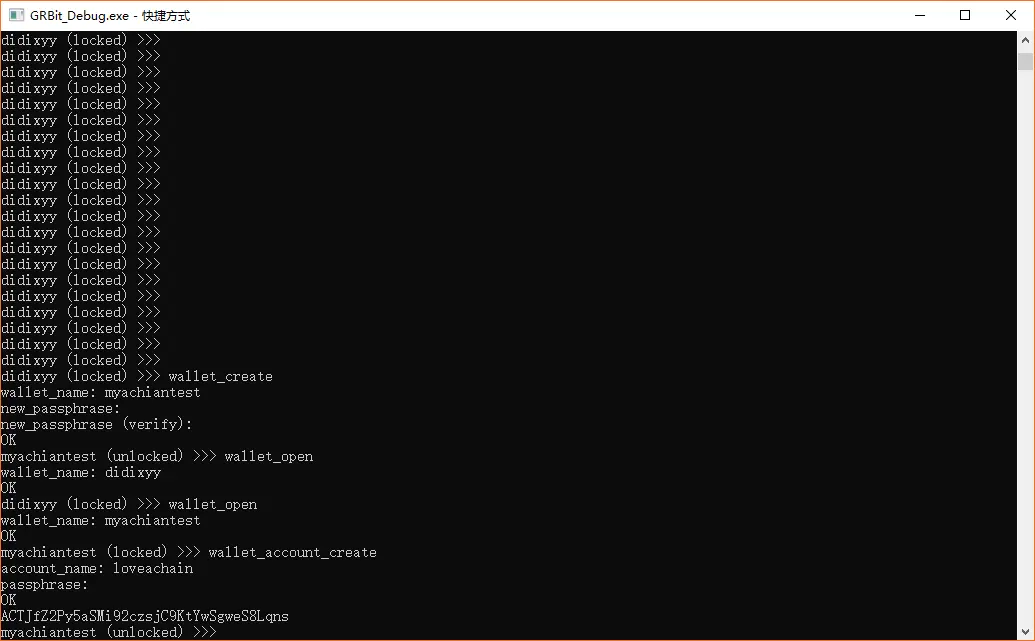 通过wallet_account_create 命令来创建账号,这里需要一个参数,account_name,这里创建的是你的账户名。