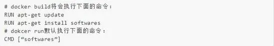 又是两条容易混淆的命令!具体细节我们就不说了,举个例子,假设一个容器的Dockerfile指定CMD命令,如下: