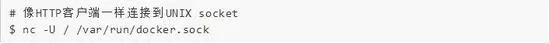 基于命令行的瘦客户端,使用UNIX Socket和Docker后台服务的REST接口进行通信。Docker默认是用UNIX socket通信的,一直到大概0.5、0.6的版本还是用端口来通信,但现在则改成UNIX socket,所以从外部无法控制Docker容器的内部细节。下面我们来搞点有趣的事情,从主机链接到docker的UNIX socket: