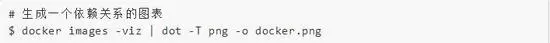 docker images命令有一个很拉风的选项:-viz,可以把镜像的依赖关系绘制成图并通过管道符号保存到图片文件: