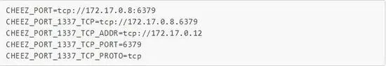 这样,我们就在两个容器间建立起一个网络通道(bridge),基于此,我们可以建立一个类似rails的程序:一个容器可以访问数据库容器而不对外暴露其他接口。非常酷!数据库容器只需要知道第一个容器的别名(在本例中为cheez)和要打开的端口号。所以数据库容器也可以env命令来查看这个端口是否打开。