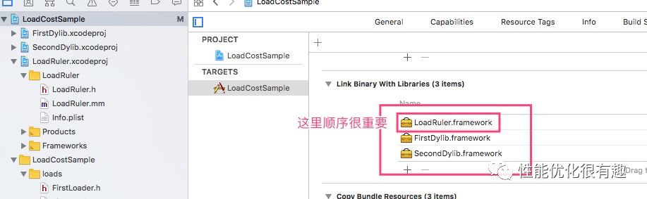 为了让我们的Hook代码加载的比这两个动态库早,我们需要新增一个动态库LoadRuler.dylib,链接的顺序很重要,要把LoadRuler第一个链接(App启动时也就会第一个加载,以及第一个执行macho中的+load方法)。