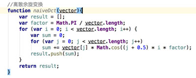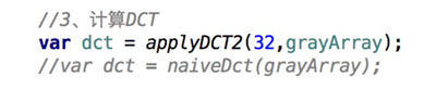 例子中实现的离散余弦变换是完全按公式实现的,计算量较大;其实是有优化版本的;